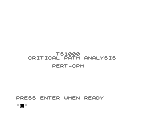 Estamos ante un ancestro del MS Project y Oracle Primavera, realizado por Timex en 1982 para el modelo con ampliación de 16 kB. El objetivo de este software era el Timex 1000.